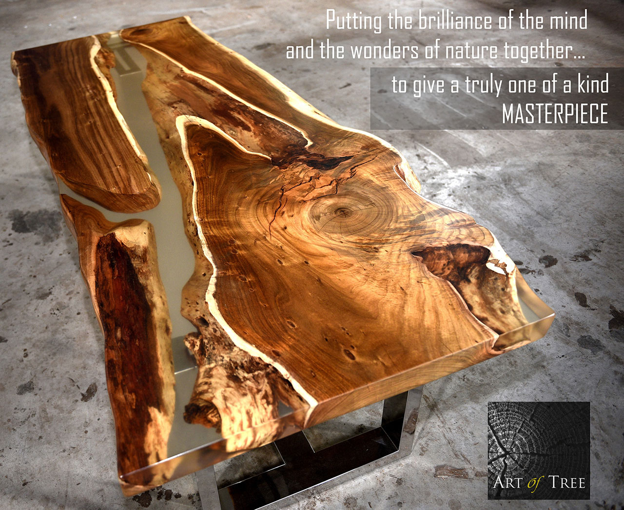 Art of Tree presents the River Symphony dining table series that is stunning, bespoke and green. With the trend of using solid wood gaining popularity, we advocate the use of salvaged trees to reduce the exploitation of trees. Repurposing salvaged trees is usually deemed a recycling activity. But we take it to a whole new level. With our expertise in the usage of resin, we are able to capture the essence of the imperfections in wood and turn them into a masterpiece.